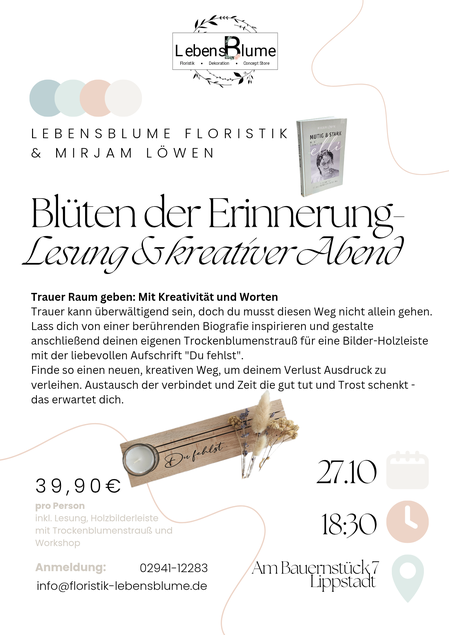 🔜 27.10. - "Blüten der Erinnerung - Lesung & KreativAbend" Lippstadt